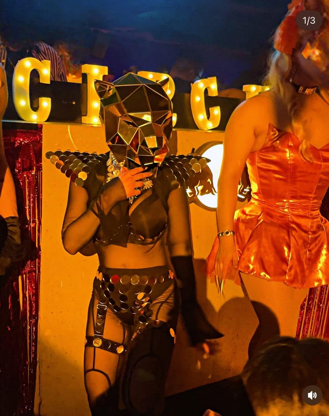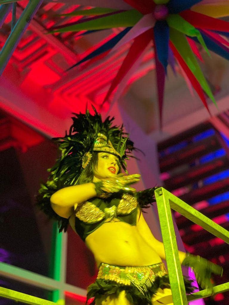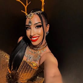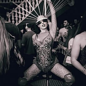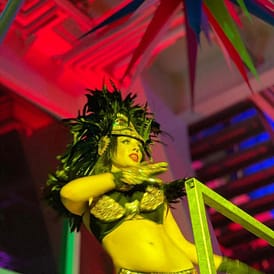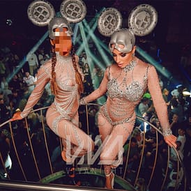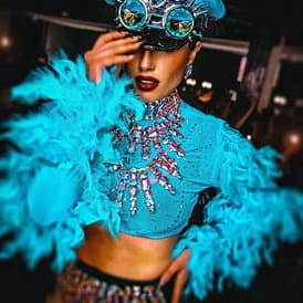 - Handgefertigte Couture-Kostüme mit Glitzer, Federn, Steinen & Masken