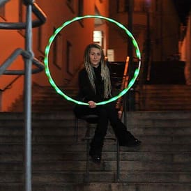 • selbstgenähter Kleidung und Hula Hoopreifen als Equipment