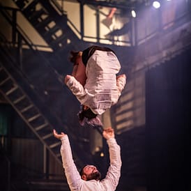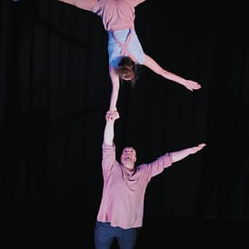 Neben ihren Soloauftritten arbeitet sie mit voller Begeisterung mit Solomon River Sage aus Neuseeland zusammen. Zusammen sind sie „SoKi“ und bringen einen ganz eigenen Glanz mit ihrer Partnerakrobatik durch Tricks und zwischenmenschlichen Beziehungen auf die Bühne. Sie werden sehen, was zu zweit aufeinander alles möglich ist und wie man Kraft haben kann, eine andere Person durch die Gegend zu werfen und zu bewegen. Die Beiden arbeiten bereits seit mehreren Jahren zusammen und sind ein eingespieltes Team.