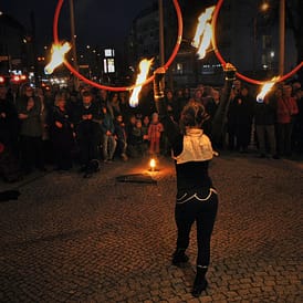 „NIGHT LIGHT“ ist eine bezaubernde Feuershow von zwei leidenschaftlichen Feuerkünstlern aus Berlin, ein geschicktes und elegantes Zusammenspiel aus Tanz und Feuerkunst.